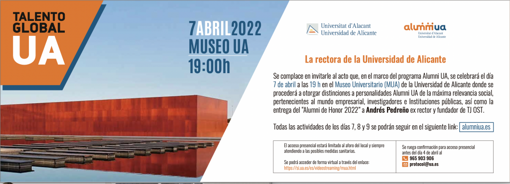 Invitación de la Rectora de la Universidad de Alicante al acto